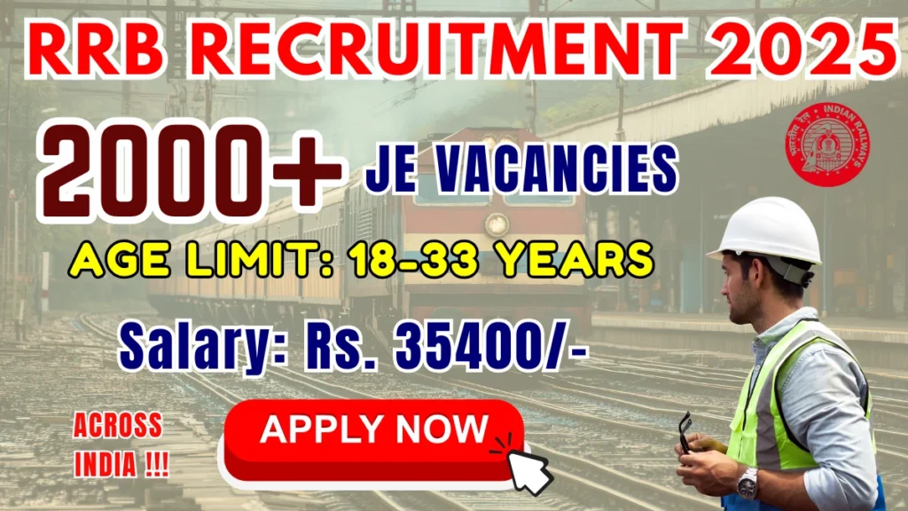 Railway Recruitment Board (RRB) has released an official Vacancy notification for the recruitment of 2569 Junior Engineer Posts. Interested and eligible candidates can apply Online through the official RRB website. The last date to submit the application form is 30-11-2025. In this article, you’ll find the RRB Junior Engineer Posts recruitment details, including eligibility criteria, age limit, salary structure, selection process, application steps, and direct links to the official notification and Online application form.